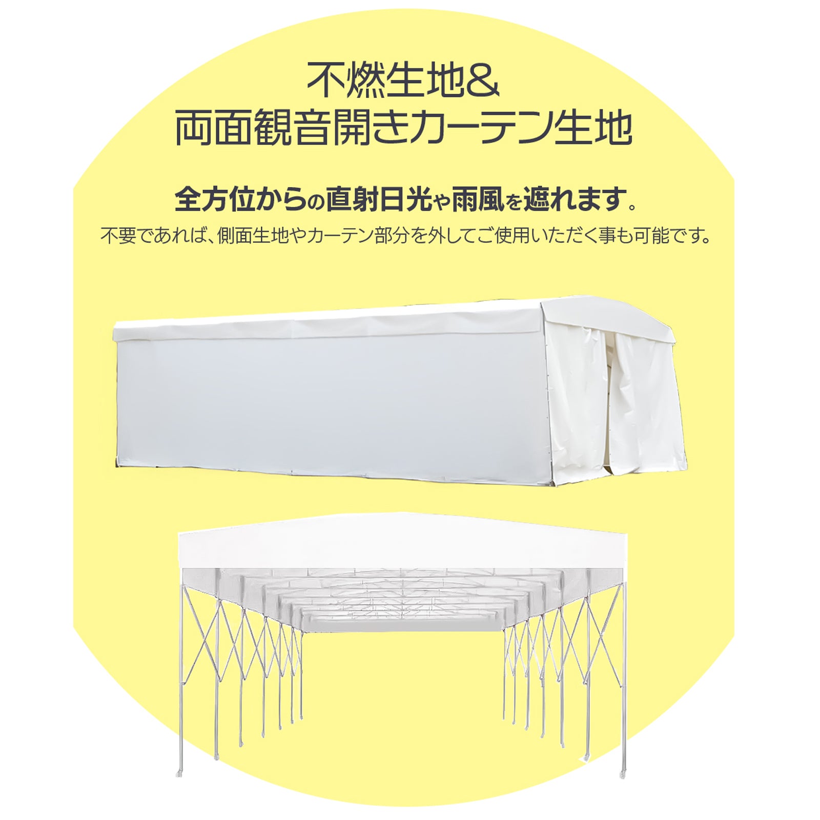 | 素材 | 柱:スチール / 生地:PVC・ポリエステル混合(不燃生地) |